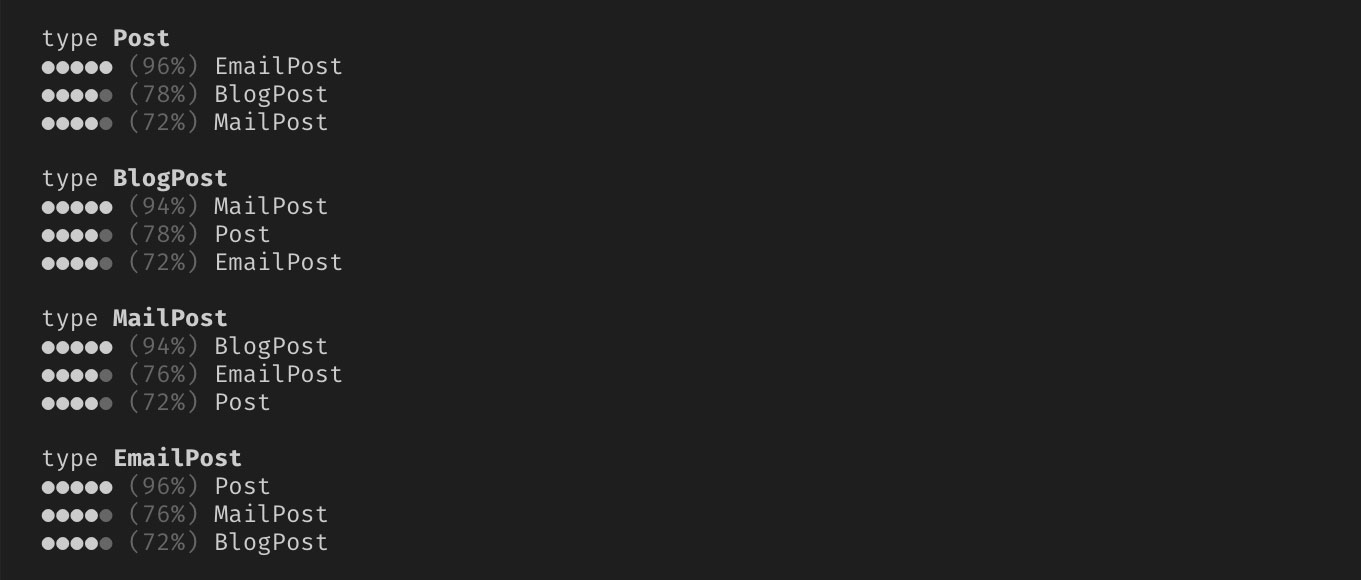 • When similar types are found, the output is: similar-output